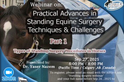 Presented by: Dr. Yaser NazemTehran Equine Hospital Language:English Target Audience:Veterinarians Event Type:Live Webinar via Zoom Date & Time:June 7, 20256:00 PM – 9:00 PM (Pacific Time / Calgary, AB, Canada 🇨🇦) Registration:To register, please send an email with the subject line “Cs-webinar” and your full […]