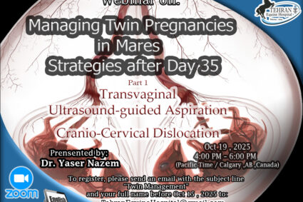 Part 1 TransvaginalUltrasound-guided Aspiration Cranio-Cervical Dislocation Presented by: Dr. Yaser NazemTehran Equine Hospital Language:English Target Audience:Veterinarians Event Type:Live Webinar via Zoom Date & Time:Oct 19, 20254:00 PM – 6:00 PM (Pacific Time / Calgary, AB, Canada 🇨🇦) Registration:To register, please send an email with the […]
